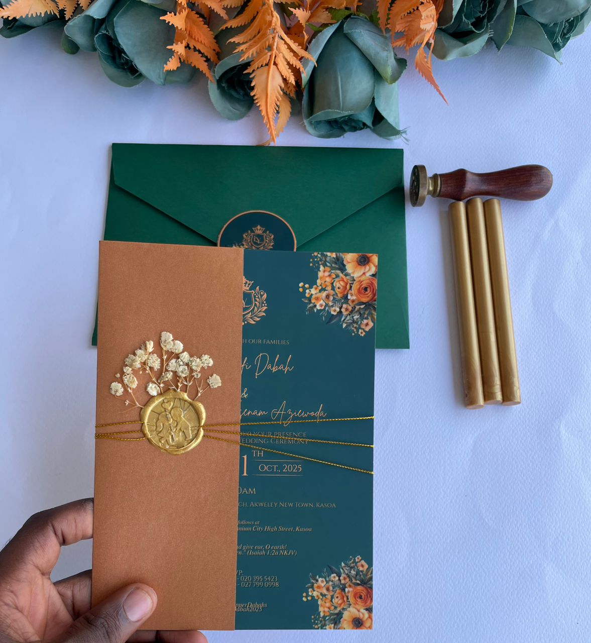 A half-fold invitation card is simply a card folded once in the middle. The front shows the main design and Inside, the details of the event are placed. It’s a neat and classic style for invitations.